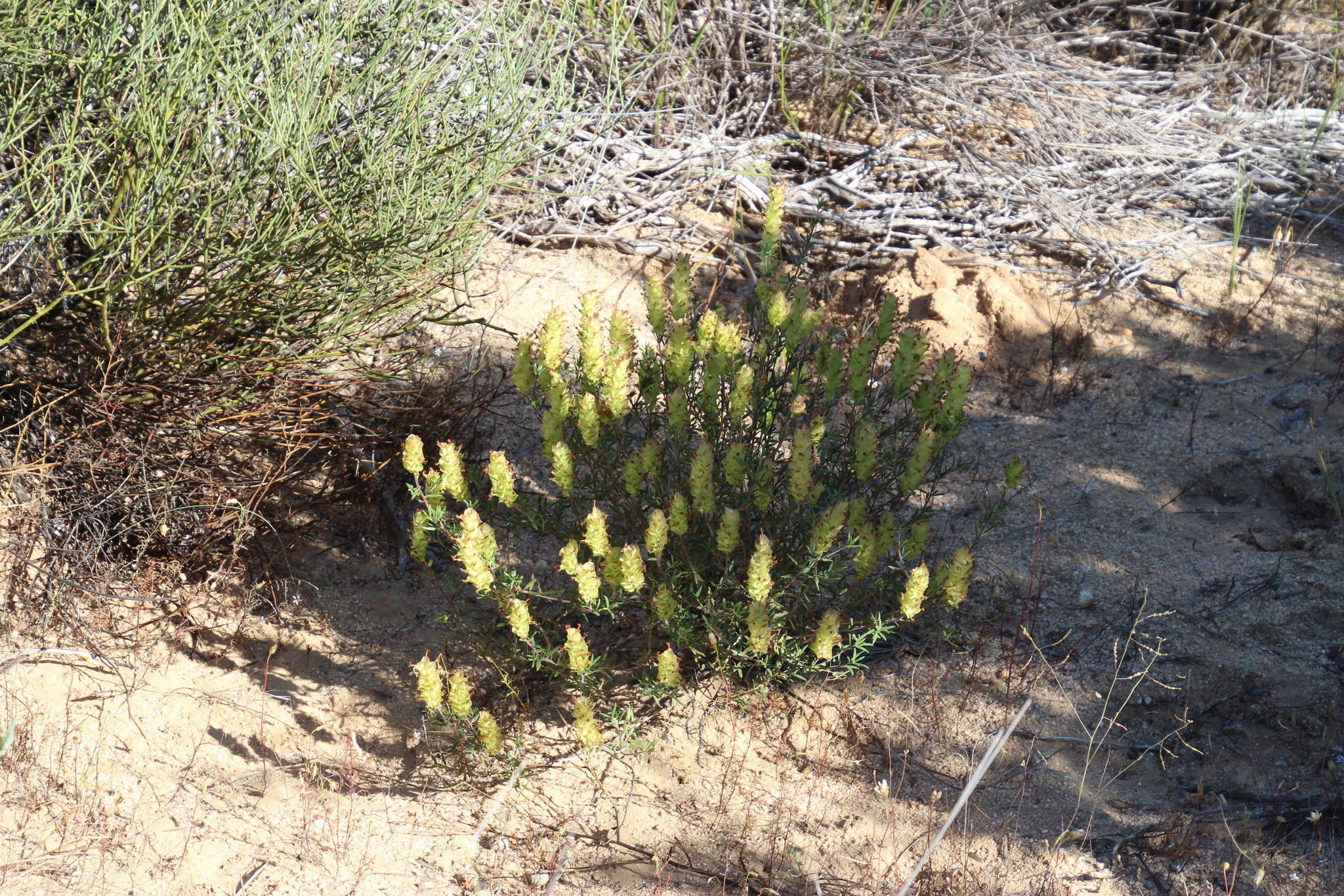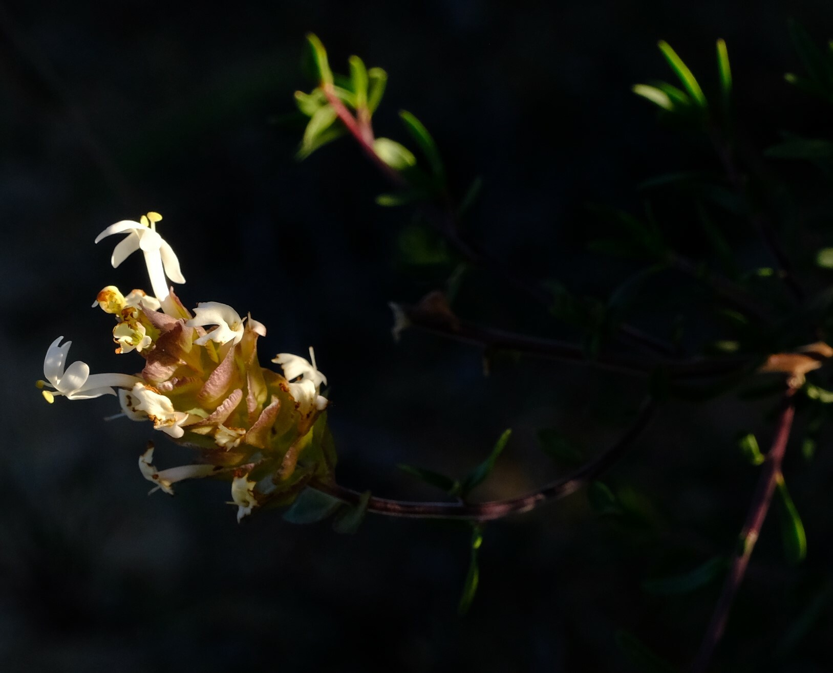 General notes: Plateau. Well-drained, brown, loamy, stony soil. Acocks Veld Type No: 69. Fynbos vegetation. No disturbance. Locally abundant. Perennial, erect dwarf shrub. Flowers white. No fruit. Plant height: 0.45 m.