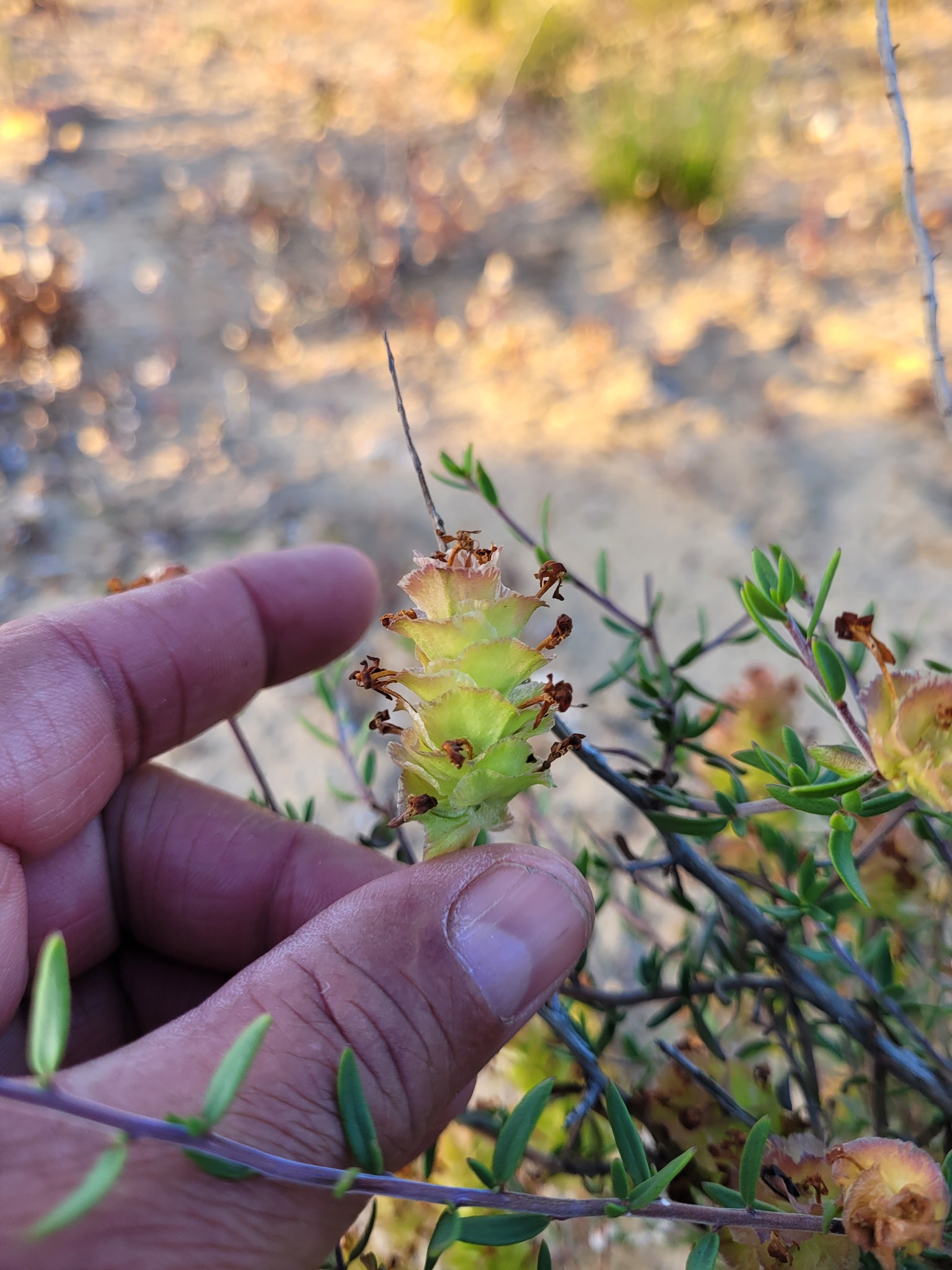 General notes: Alt. 1000 ft. In dry clay soil. Rare. Small bushes nearly out of bloom at time of gathering.