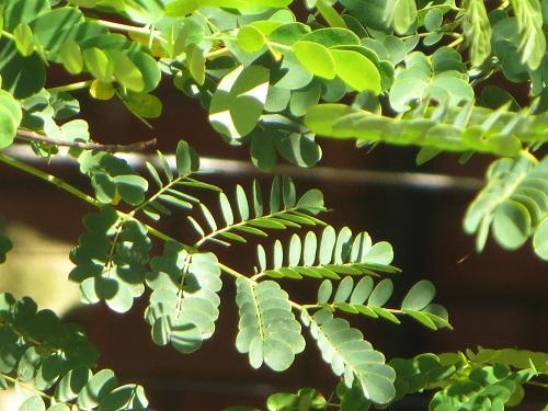 General notes: Cultivated shrub?. Compound leaves, light brown pods, flowers yellow with long red stamens.
